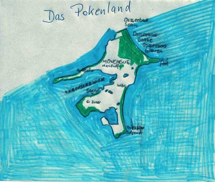Sommer. In Rotorua gibt es die Besonderheit, dass dort einmal die Gesiere sind, also das heiße Wasser schießt aus der Erde und kochender Form. Hier gab es auch ein schwefelhaltiges Schwimmbad mit Temperaturen von 36 Grad bis 42 Grad. Und unser Hotel war unterirdisch an diese heißen Quellen angeschlossen, die Heizungsrohre der Zentralheizung wurden mit dem Heißwasser der Quellen gespeist. Das Pokenland das an der Insel Rügen hängt, will ich hier näher beschreiben. Es hat seine Eigenarten, seine eigenen Leute und seine eigene Geschichte. Ein Teil dieser Geschichte hat meine Familie mitgeschrieben. Ein Leben allein genügt nicht, dies zu beschreiben. Meine Familie Zobel ist seit 1832 in Baabe ansässig. Hier ist auch der Zobelhof am Selliner See, die älteste noch erhaltene Hofstelle auf der ganzen Halbinsel Mönchgut, deren beide Häuser auf das Jahr 1680 zurückgehen. Die Familie Gager, früher noch von Gagern genannt, ist sogar schon seit über 800 Jahren auf der Insel Rügen nachgewiesen, dazu gehörte meine Großmutter Marie. Sie war kein Poke, denn sie wurde 1868 in Seedorf auf Rügen geboren. Das ist von Baabe aus circa 3 Kilometer zu Fuß, mit dem Boot über die Having über den Hügel und schon ist man in Seedorf. Verlässt man aber das Pokenland entweder über den Mönchgraben oder auf dem Seeweg, so ist man kein Poke mehr. Mein Großvater Reinhold Zobel wurde 1868 in Baabe geboren. Man sagt, ein echter Poke also ein Mönchguter ist nur der, dessen beide Elternteile in der 3. Generation auf Mönchgut geboren wurden. Echte Poken sind heute eine Rarität, denn durch den regen Reisebetrieb ab 1871, als das Deutsche Reich entstand und die Ländergrenzen wegfielen, sind viele Volksmischungen entstanden. Das Pokenland an sich ist aber etwas Besonderes geblieben. Die Landschaft ist auf 3 Seiten von Wasser umgeben. Nur 300 Meter Landverbindung am "Mönchgraben" verbinden das Pokenland Mönchgut mit der Insel Rügen. Ein findiger Bürgermeister will sogar den Mönchgraben wieder tiefer machen lassen, weil er versandet ist. Und weil man ihn nicht mehr sehen kann, soll er ausgebaggert werden und noch ein großes Tor über die Straße gebaut werden, nicht nach Baabe kommt man dort, sondern es ist das TOR ZUM MÖNCHGUT Dieser findige Bürgermeister ist ein ganz lustiger Typ. Aber darüber später. Im Kalenderjahr 2001 wohnten in den einzelnen Orten im Pokenland: Im Ostseebad